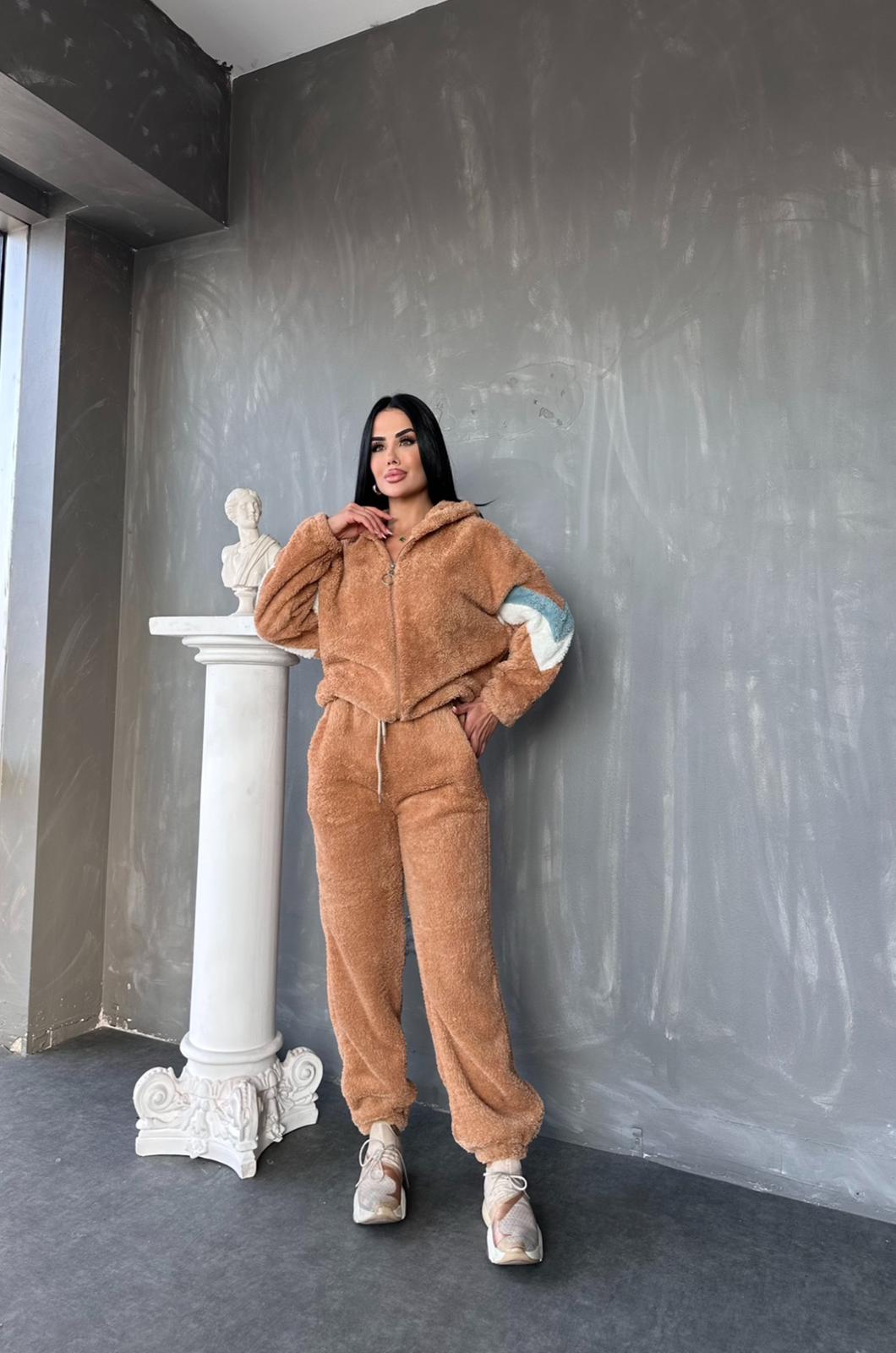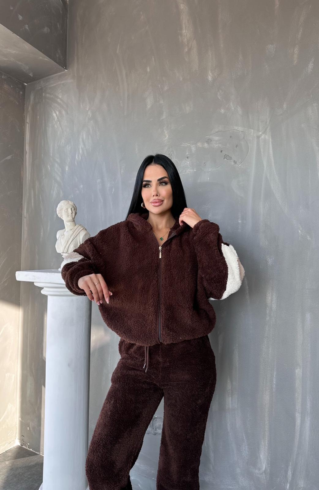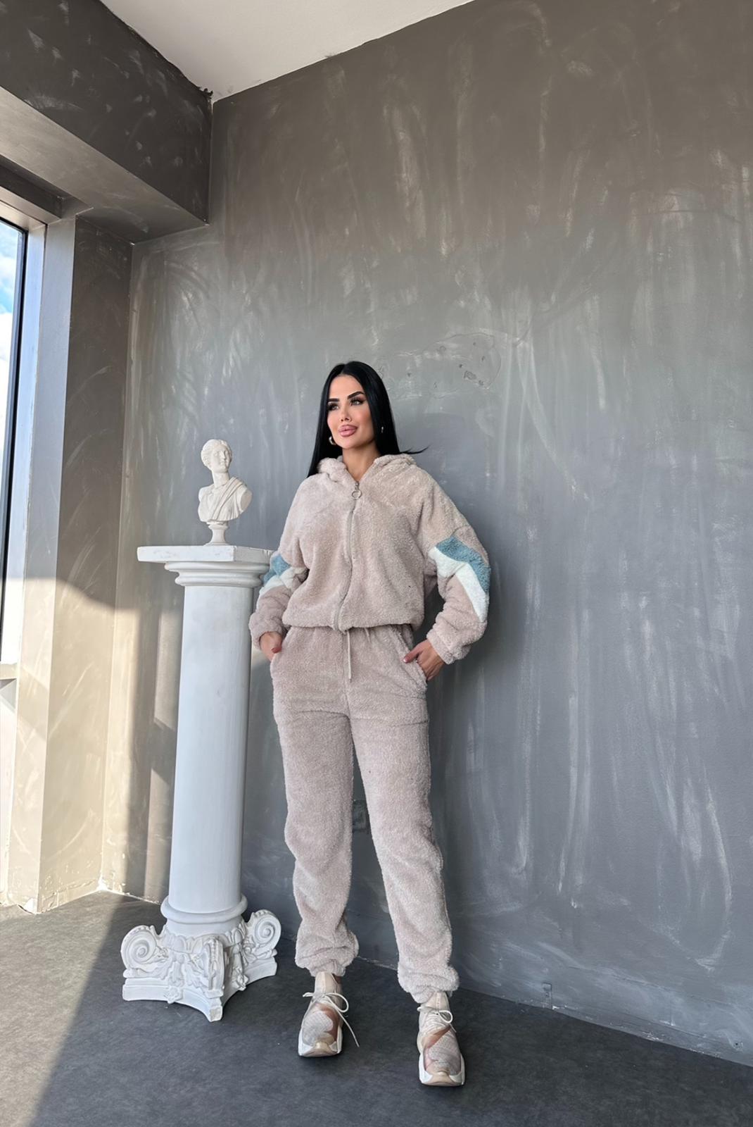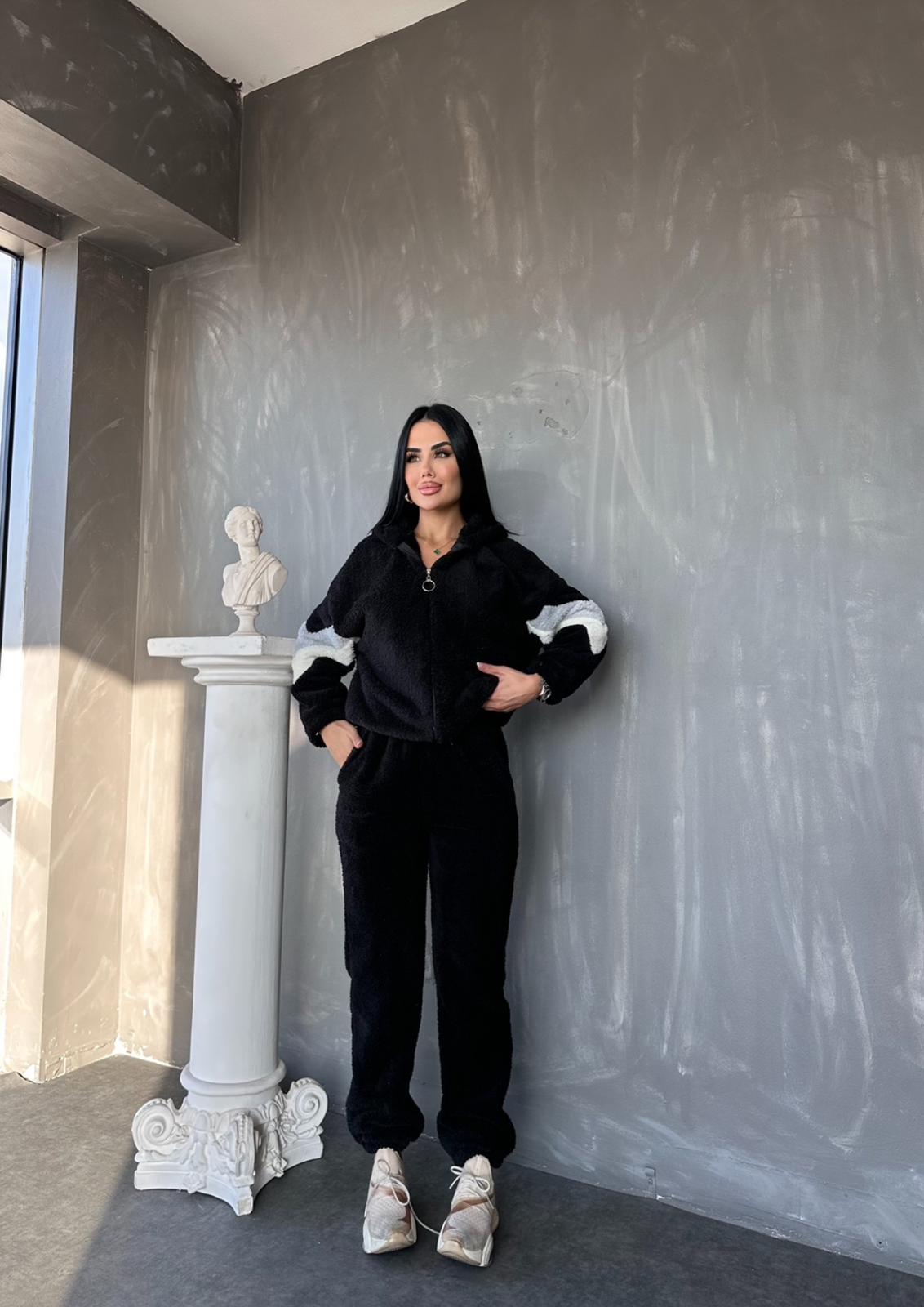 Bucură-te de o ținută călduroasă și elegantă cu setul din blăniță de iarnă, creat pentru a-ți oferi confort și stil în zilele reci. Setul este format din o bluză elegantă și pantaloni largi, confecționate dintr-un material moale și plăcut la atingere, ideal pentru sezonul rece.