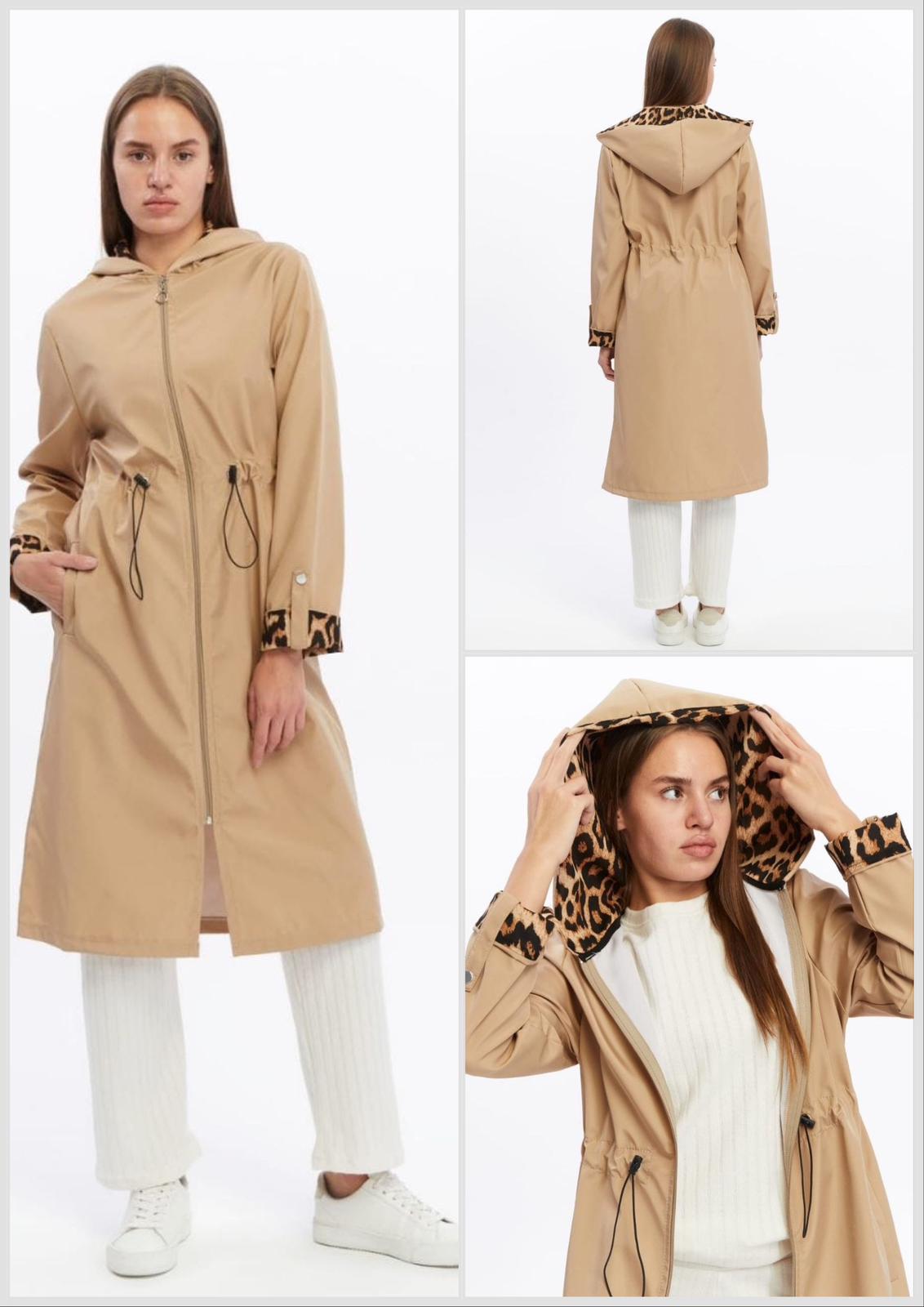 Jachetă de lungime medie, de calitate excelentă, cu glugă rezistentă la apă. Disponibilă în trei culori: negru, bej și maro deschis. Disponibilă în mai multe mărimi.