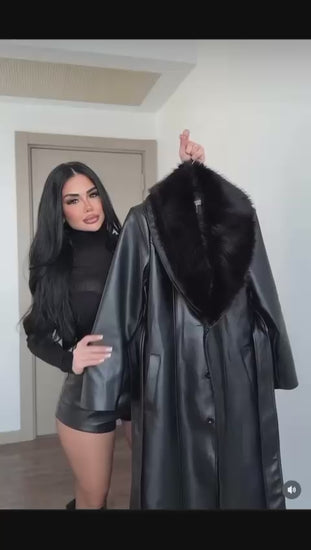Palton elegant , completat cu blană pufoasă (detașabilă)și un cordon reglabil în talie, ce evidențiază silueta. O piesă versatilă și călduroasă, perfectă pentru un look rafinat în sezonul rece.