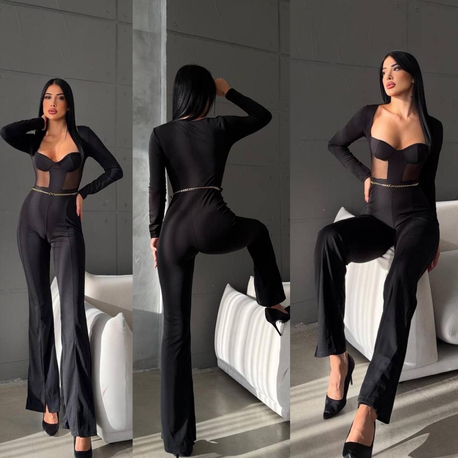 Design: Această salopetă elegantă și modernă are o croială sofisticată, evidențiind silueta feminină printr-o talie accentuată și un design rafinat.